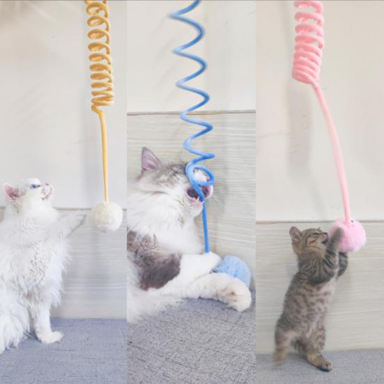 3Pcs Hanging Fluffy Catnip Ball Toys Play Interactive Kitten Exercise Toy with Bell Long Tail Plush Teaser Ball for Indoor Outdoor Play
