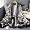 Cotton and Linen Feel Outer Scarf Black and White Bohemian Headscarf Beach Towel Air-conditioned Room Shawl Women