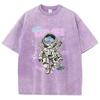 Street Women Cotton Washed T-Shirt Here Explore Space Astronaut Prints Print Tee Shirt Loose Tops Casual Female Clothes