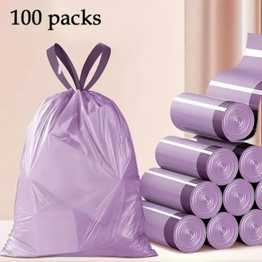 100 Purple Drawstring Garbage Bags, Plastic Garbage Bags, Suitable for Kitchen, Bathroom, Bedroom and Household - Portable Disposal