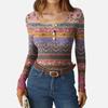 Women's Slim Bottom T-shirt Fashion Casual Gradient Printing Round Neck Pullover Long Sleeve Top