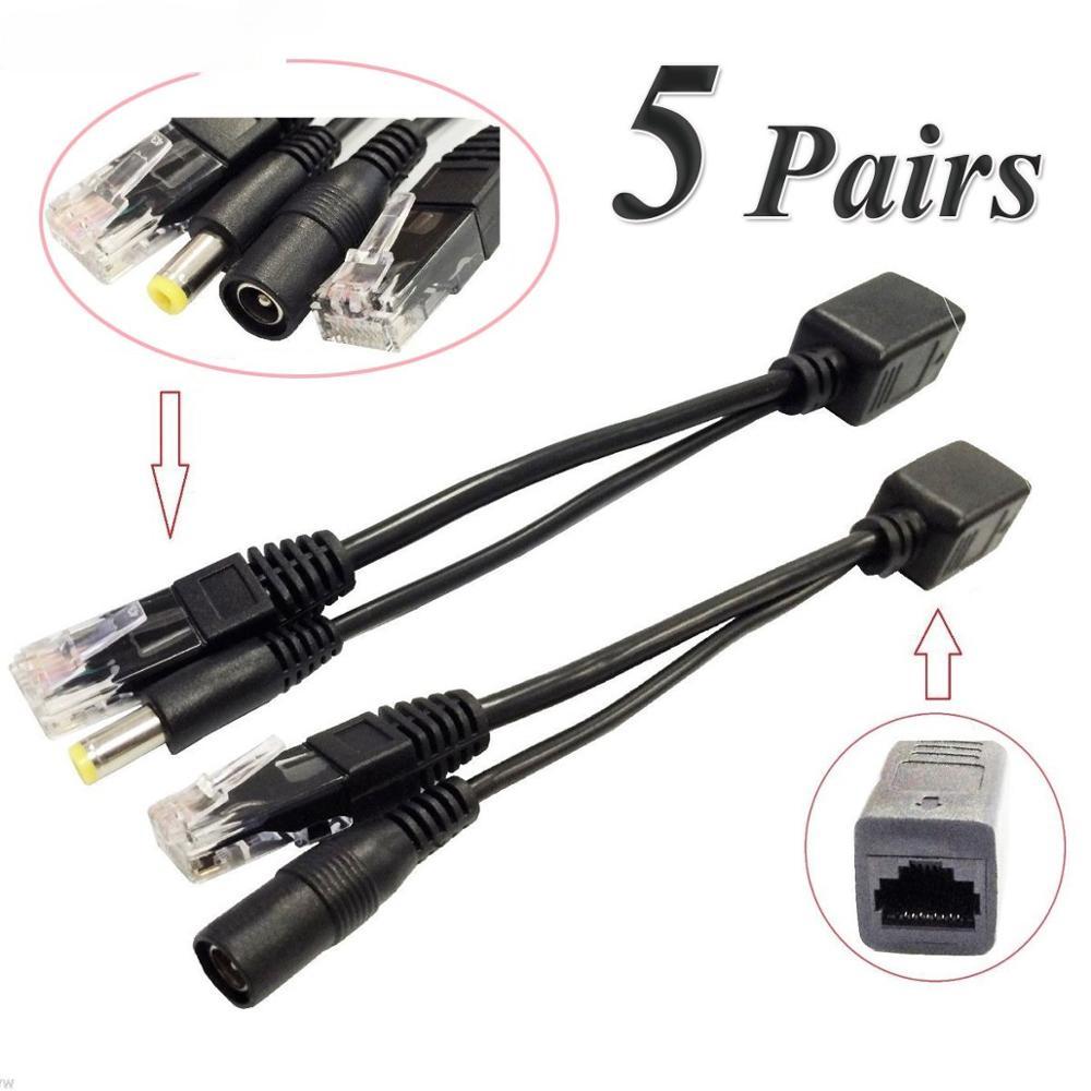 10pcs(5pair) POE Splitter POE Switch POE Cable Adapter Tape Screened 5V 12V 24V 48V Power Supply Cable 5.5*2.1mm
