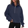 Women's Stand Collar Plus Fleece Solid Color Hoodie Long Sleeve Pocket Loose Half Zip Pullover Hoodie Top