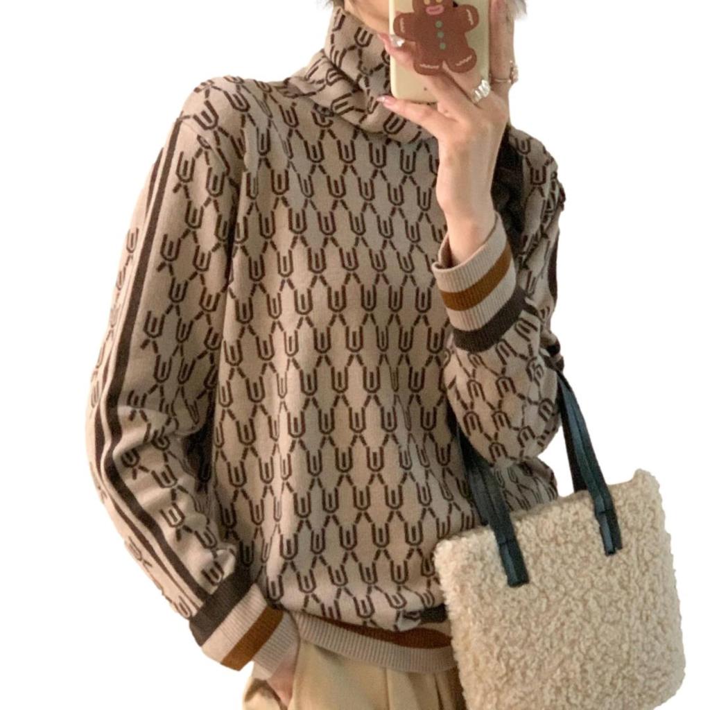 Knit Geometric High Long Drop J-Scott Women's Sweater, Print, Neck, Sleeves, Shoulder, Pullover, Beige, JS121-BG-M