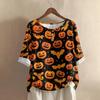 Women's Casual Mid Sleeved Round Neck Halloween Printed Cotton And Linen Top