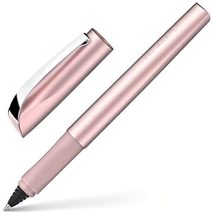 Stylo roller schneider ceod shiny - pour droitiers et gauchers - épaisseur de pointe m cartouche d'encre bleu roi incluse rose poudr