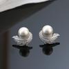 Huitan Micro Pave Cz Earrings with Feather Shape Female Aesthetic Luxury Zircon Chic Simulated Pearl Accessories for Engagement