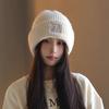 Wool Hat Autumn and Winter Women's Versatile Knitted Bag Head Shows a Small Face and Keeps Warm, White Plush Plush Cold Hat Big Head Circumference