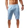 Men Shorts Solid Color Breathable Cotton Linen Drawstring Mid Rise Short Pants Knee-length Shorts for Running
