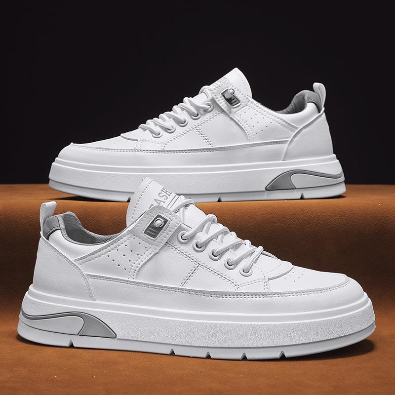 2025 Men's Shoes Autumn New Microfiber Leather Surface Platform White Shoes Fashion Casual Elastic Band Foot Cover Work Board Shoes