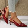 Fashion New Summer Women's Dress Shoes Patent Leather Slip On Pointed Toe Sandals Buckle Slingbacks Mid Heels Pumps Sandalias Mujer