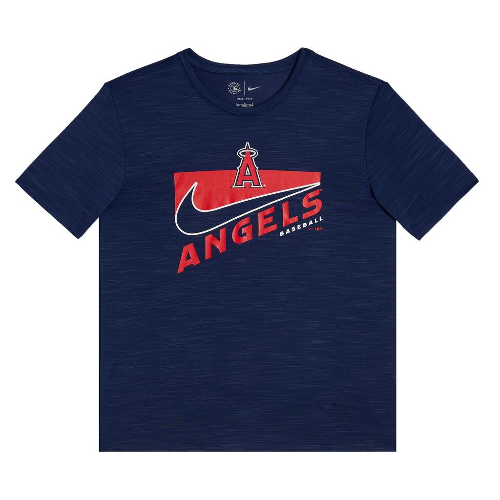 Nike MLB Collaboration Angels Baseball T-Shirt Dri-Fit Series Brand Logo Quick-Dry Crew Neck Short Sleeve Kids Tops Navy-Blue 3Z3B7SBG6-LAA