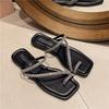 Low-heeled Lightweight Sandals, New Summer Flat-bottomed Rhinestone Temperament Cover, Toe Cool Slippers for Women