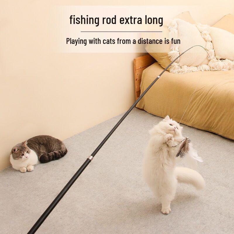 Retractable Cat Teaser Wand with Feather Head, 1.8m Long, Bite-Resistant Kitten Toy