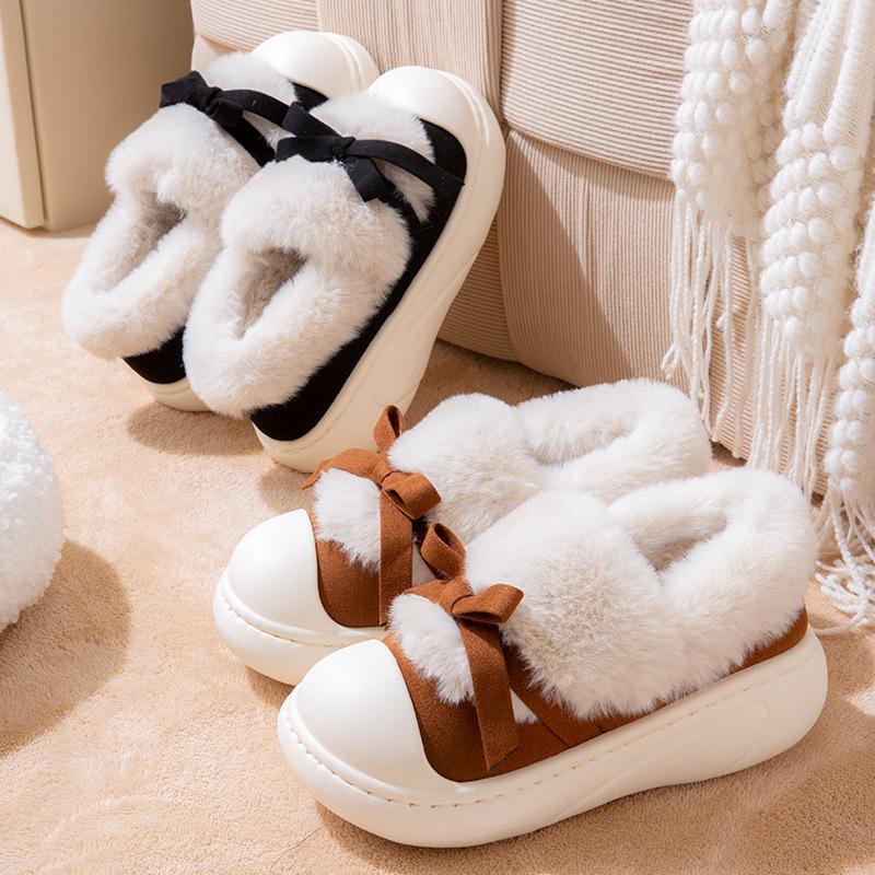 Fashion Fashion Bowknot Warm Winter Boots Woman Faux Fur Thick Sole Non-Slip Snow Boots Woman Slip-On Soft Bottom Plush Ankle Botas