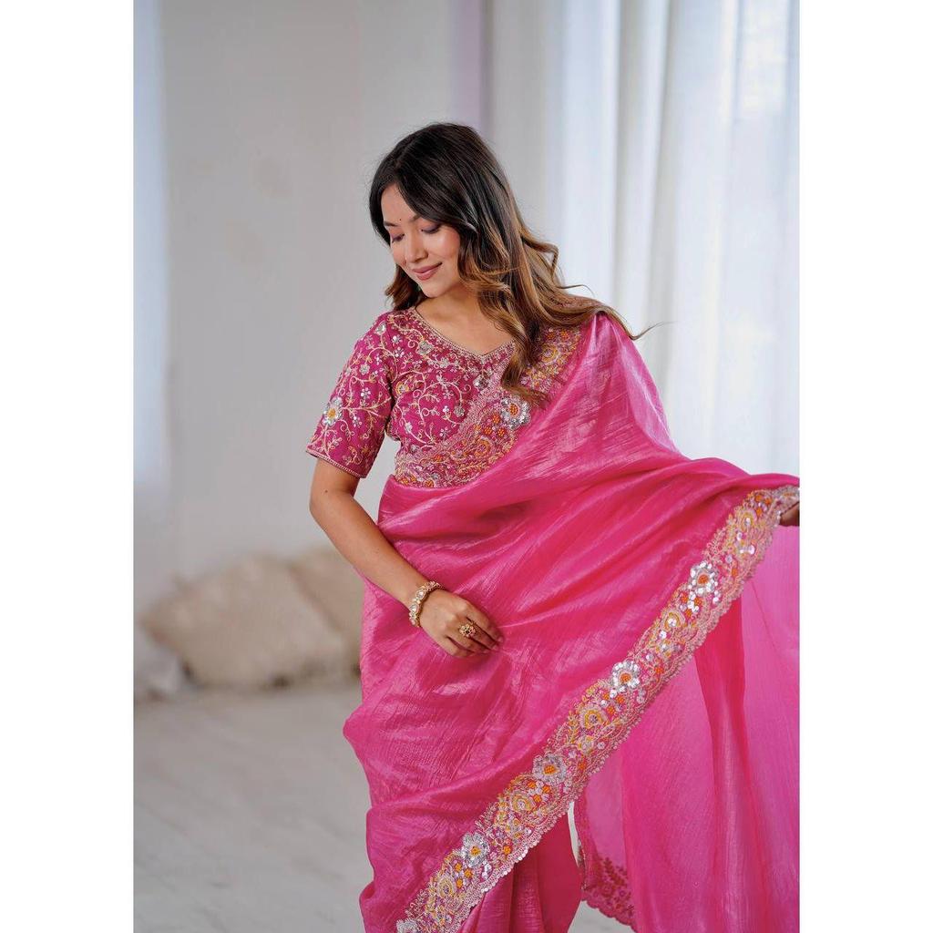Beautiful Saree Is Elegantly Decorated Gives a Perfect Look To the Outfit.
