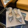 [Spot] High-heeled Women's 2025 New Pointed Rhinestone Bow Design Sense Niche Thin-heeled Sandals Women
