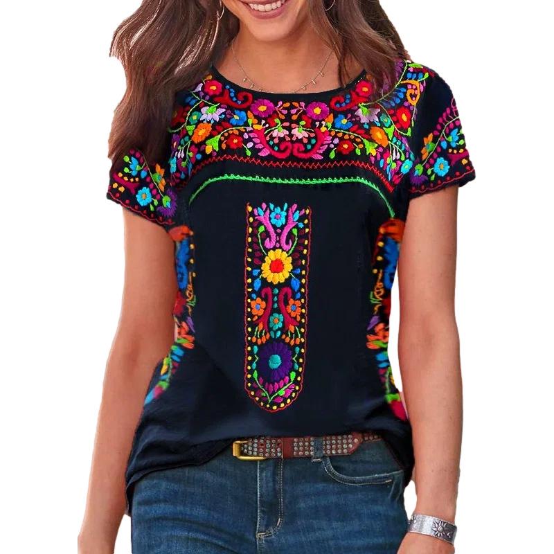 2022 Bohemian Print Women's Round Neck Short Sleeve T-shirt