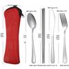 Stainless Steel Portable Cutlery Set with Cloth Bag - Includes Knife, Fork, Spoon & Chopsticks for Outdoor Travel