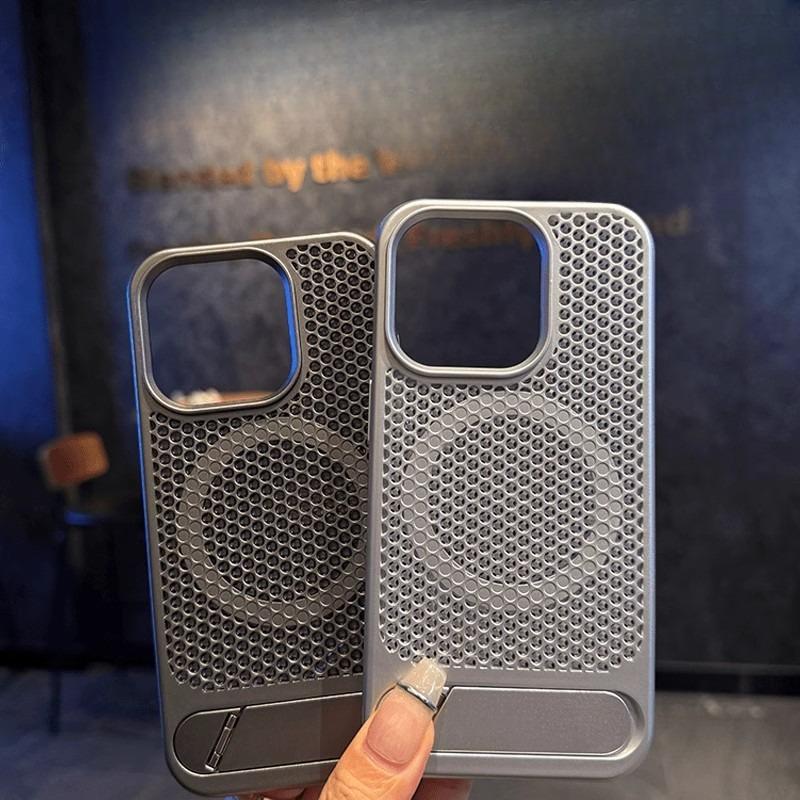 Applicable To IPhone16 Hollow Honeycomb Cooling Mobile Phone Case Apple 15 Promax Magnetic Folding Bracket Protection Case