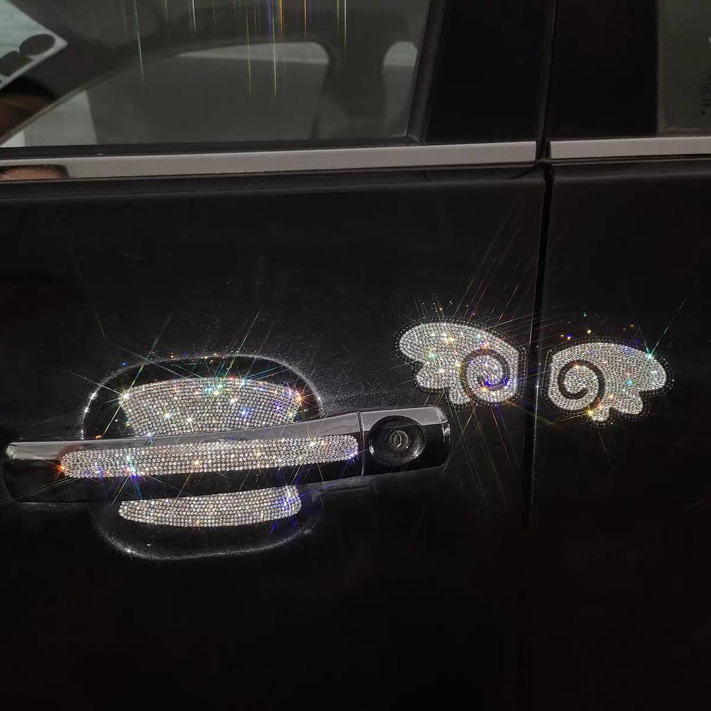 Bling Diamond Stickers for Car Rear Window Cute Wings Auto Scratches On Bumper Body Refrigerator Helmet Blossom Decal Decro