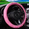 Soft Leather Embroidered Stereo Diamond-studded Car Steering Wheel Cover with Inner Ring Fits 14.5-15 Inches