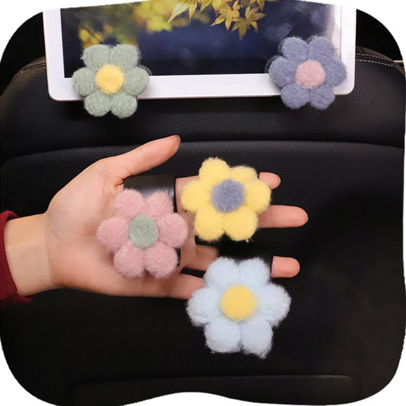 2PCS Cute Plush Flowers Car Seat Back Hooks Storage Vehicle Headrest Organizer Hanger for Groceries Bag Handbag Car Accessories