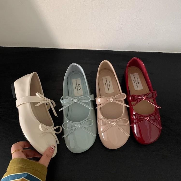 Evening Wind Shoes French Bow Mary Jane Shoes Flat Women's Shoes Early Spring with Skirts Soft-soled Single Shoes Ballet Shoes