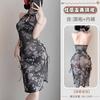 Sexy Printed Backless Cheongsam Neck Dress Embroidered Slit Classical Lingerie Retro Cosplay Woman