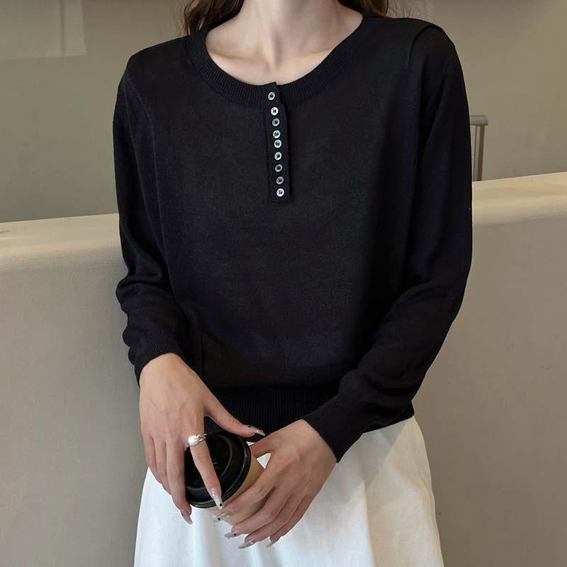 Simple Half Placket Button Design Loose Pullover Knitted Sweater Women's Fashion Age-reducing Casual Inner Bottoming Shirt Early Autumn