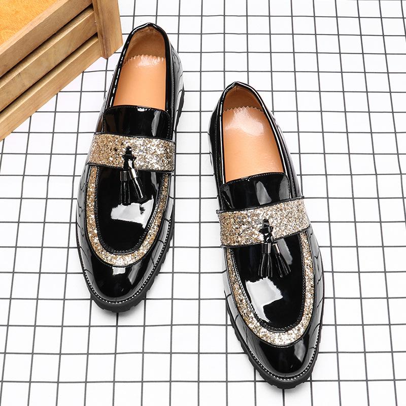 2558 Loafers Plus 45 New Pointed Leather Shoes Men's Trend Sequins British Tassel Loafers