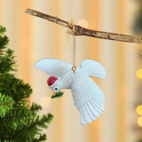 Peaceful White Flying Pigeon Ornament Resin Lifelike Hanging Bird Decoration for Christmas Tree Holiday Home Decor