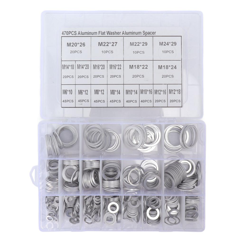 470Pcs Sealing Washer Aluminum Alloy Round Flat Washer Assortment Kit for Automobiles Faucets