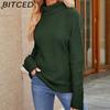 BITCED Women's Autumn/Winter Solid-Colour Knitted Top with High-Neck Cable-Knit Sweater Elegant High-Neck Base Layer