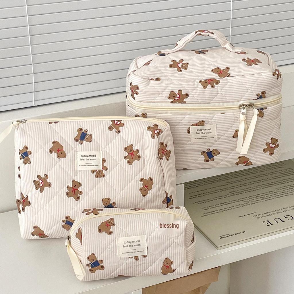 Striped Bear Cartoon Travel Cosmetic and Toiletry Bag