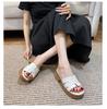 2025 Summer with Skirts Comfortable and Lightweight Open-toed Sandals Women Weave Simple Thick-soled Thick-heeled One-word Slippers