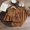 Kid's 2 Piece Printed Suit Short Sleeve Button Up Top Wide Leg Pants Suit Set Pajamas Home Casual Suit