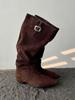 Sheepskin Version~ Pile Boots Belt Buckle Skinny Boots Pointed Low Heel Retro Western Cowboy Boots Female Knight Boots