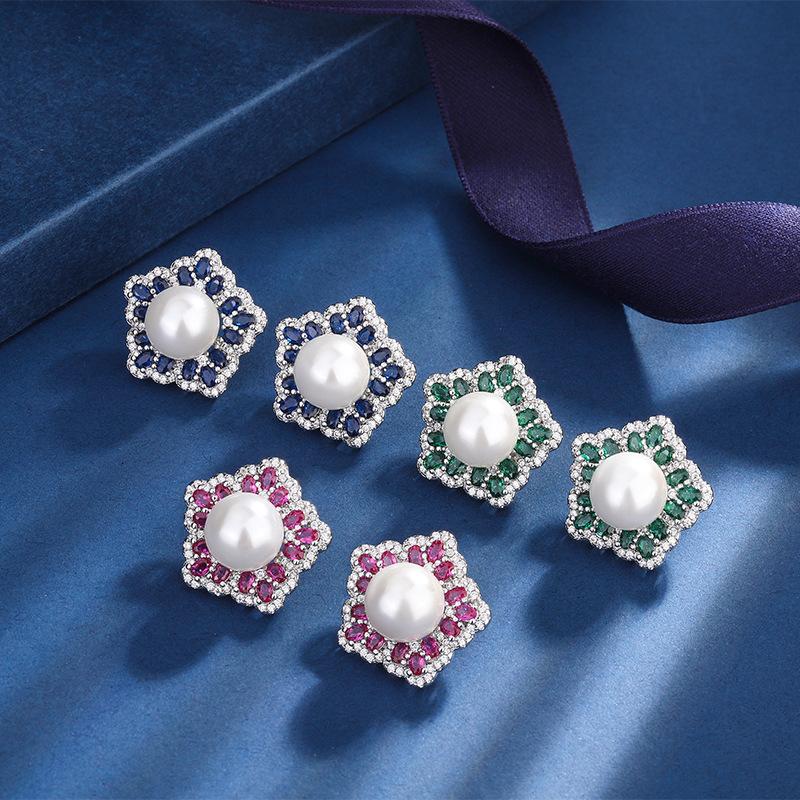 Jewelry Copper Bottom Gold-Plated Fritillary Pearl Star Colored Treasure Diamond Stud Earrings 10Mm