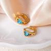 Elegant Water Drop Purple Zircon Rhombus Titanium Steel Earrings - Women's High-end Non-fading Heart Studs