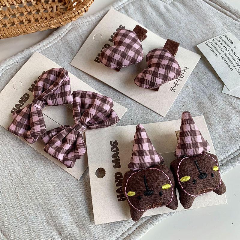 Sweet Pink Plaid Heart Cat Hair Clip - Versatile and Cute for Girls