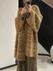 European & American Color-Block Mid-Length Knitted Cardigan: Casual Loose Fashion Sweater Coat for Women