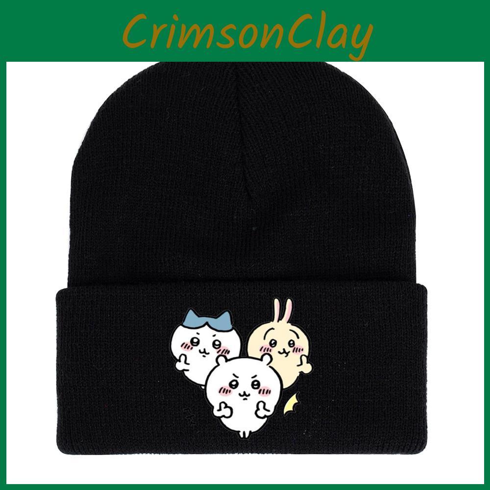 Round Chiikawa Usagi Top Dopamine Print Knit Hat For Animation Enthusiasts
