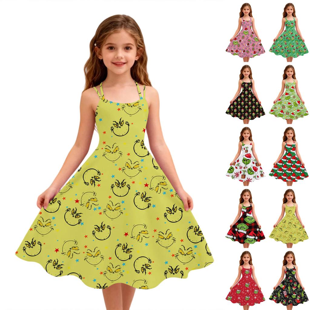 Children's Fashion Casual Christmas Print Off-Shoulder Punk Vintage Dress