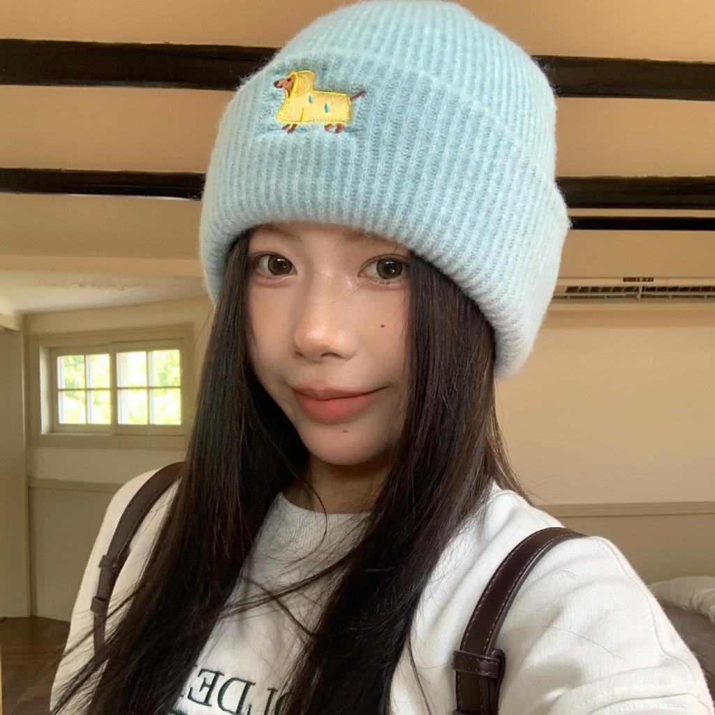 Embroidered Woolen Caps Are Cute for Children In Autumn and Winter. They Are Small Knitted Caps with Big Heads That Show Off Their Faces