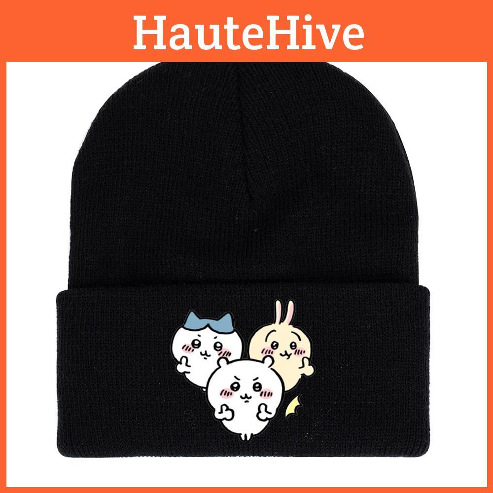 Usagi Round Chiikawa Top Dopamine Print Knit Hat For Animation Enthusiasts