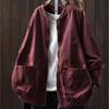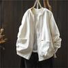 Johnature Women Vintage Jackets Solid Color Stand Long Sleeve Coats Autumn Zipper Loose Casual Pockets Jackets