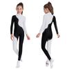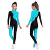 Girls Full Body Leotard Shiny Rhinestones Color Block Mock Neck Long Sleeve Gymnastics Wear