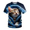 Comfortable Soft Cute Cat Summer Short Sleeved T-shirt 3D Printed Round Neck Casual Sports Men's Women's T-shirt