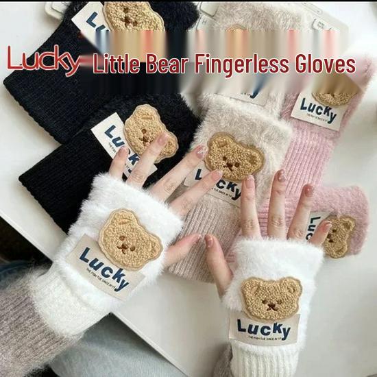 Lucky Bear Kids' Half-Finger Plush Gloves - Cute, Warm & Mobile-Friendly